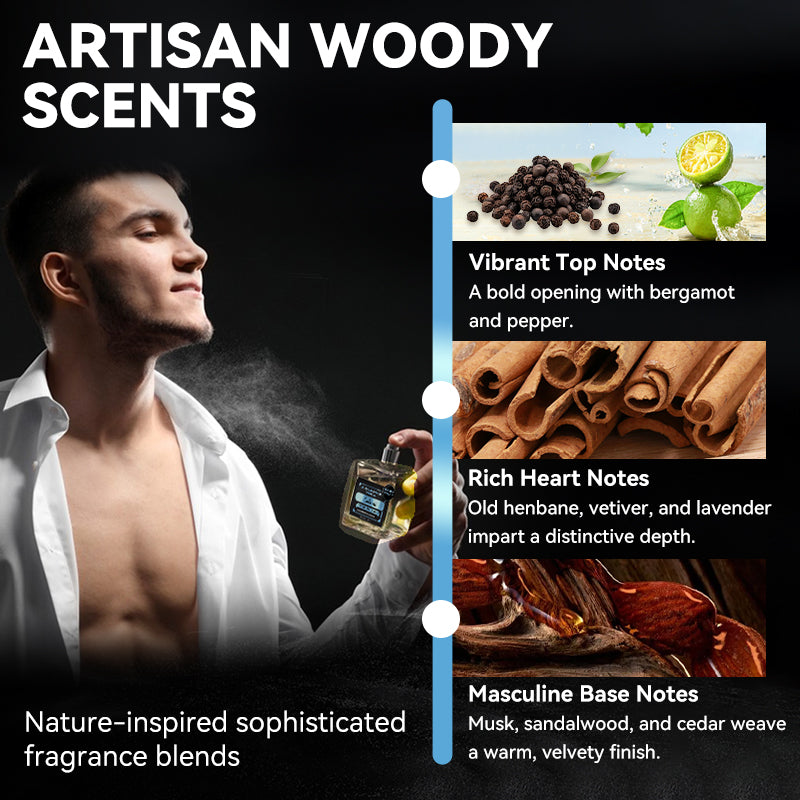KÜNSTLERISCHE HOLZMISCHUNG – Azurblau erinnert an Meeresnebel über Treibholz; Erde glüht mit Vetiver und Eichenmoos; Wildnis flüstert Kiefernwälder im Morgengrauen. Jeder Sprühstoß entfaltet sich wie eine Saga – ungezähmt, raffiniert und unvergesslich. Tragen Sie Ihre Geschichte.